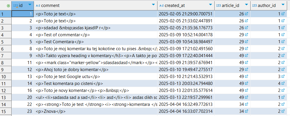 author_id | FK → User | Používateľ, ktorý napísal komentár |